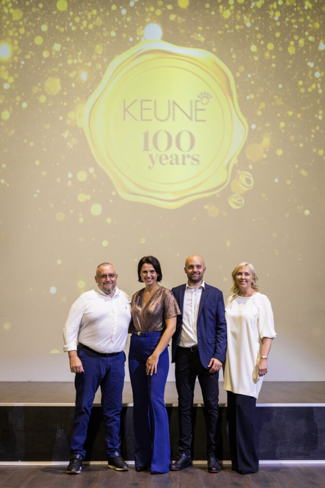 Pasākuma programmu ar svinīgu uzrunu par zīmola vērtībām un sasniegumiem atklāja Keune Latvija valdes priekšsēdētājs Roberts Zušmanis un mārketinga vadītāja Sabīne Zušmane, svētku runu turpinot Andim Zušmanim un Andrai Grasmanei ar sirsnīgu atskatu Keune Latvija pirmajos soļos pirms 25 gadiem, kad Keune zīmols uzsāka savu ceļu Latvijā. Interesanti, ka Keune par saviem partneriem pasaulē izvēlas ģimenes uzņēmumus, un tāds tas ir arī Latvijā – šī ir jau otrā paaudze. Andras un Anda uzsākto biznesu veikmīgi turpina viņu vecākais dēls Roberts ar sievu Sabīni.
