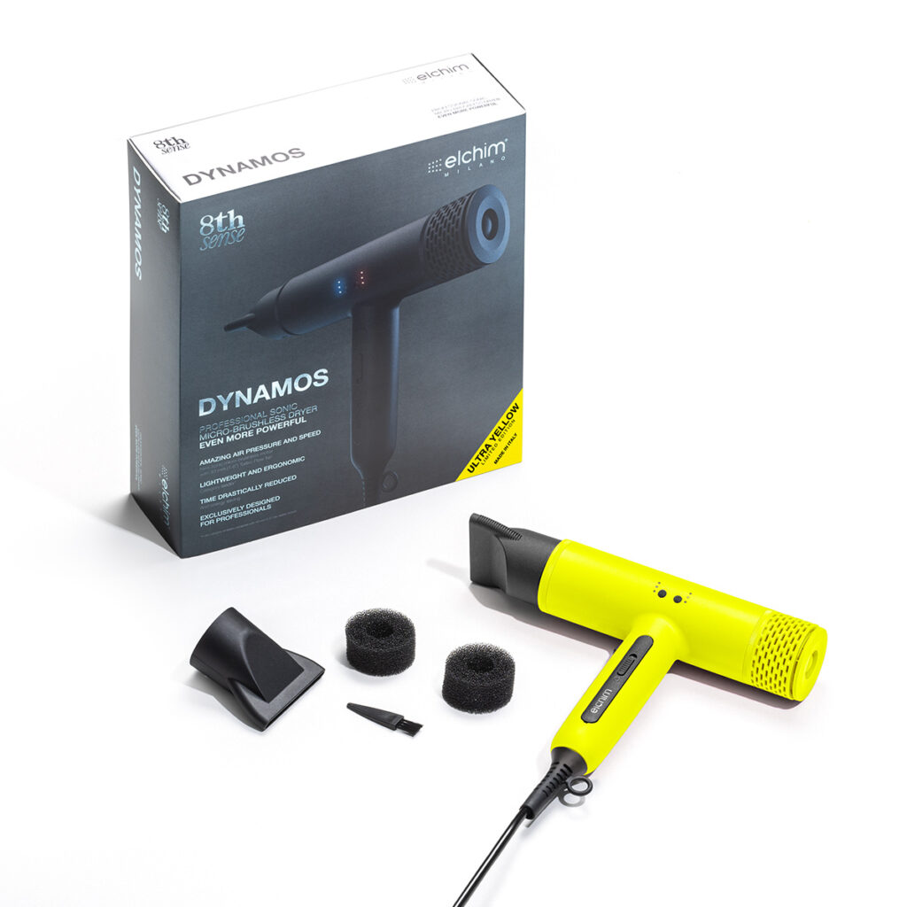Dynamos ir Elchim jaunākā inovācija – rezultāts 80 gadu pieredzei, izpētei un attīstībai. Tas ir sākums jaunai matu žāvētāju paaudzei. Vārds Dynamos iemājo kustības spēku, jaudu un enerģiju. Aprīkots ar nākamās paaudzes digitālo bezsuku motoru, Dynamos sniedz vēl lielāku gaisa plūsmas jaudu, ievērojami samazinātu žāvēšanas laiku un vēl neredzētu energoefektivitāti.
