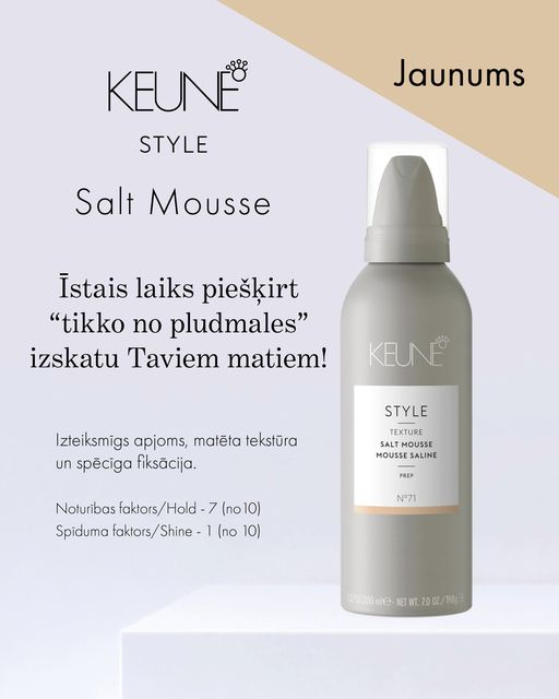 Iegūsti vēlamo izskatu ar Keune Style Salt Mousse jeb pludmale pudelē!
